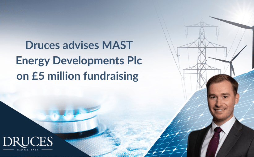 Druces LLP have advised MAST Energy Developments Plc (MAST), UK-based multi-asset owner, developer, and operator in the rapidly growing flexible generation power market on its recent £5 million fundraising which has the potential to rise from £5m to £15m in aggregate. The transaction marks a significant milestone in the development and progression of MAST in the sector.